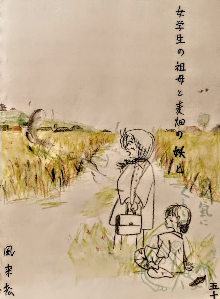 彼女が女学生の頃だというので、昭和初期か。場所は愛媛県松山市の麦畑。友人と登校中、それは祖母の前に突然現れた。「手も足ものうて、白っぽい長い尻尾のようなもんが、空を飛んで畑の向こうへに姿を消したんよ。」あまりの事に友人は、腰を抜かしたと言う。普段、冗談こそ言えど、ひとをかつぐことなど無い祖母の話は、彼女の見た事実には違いないと思う...。