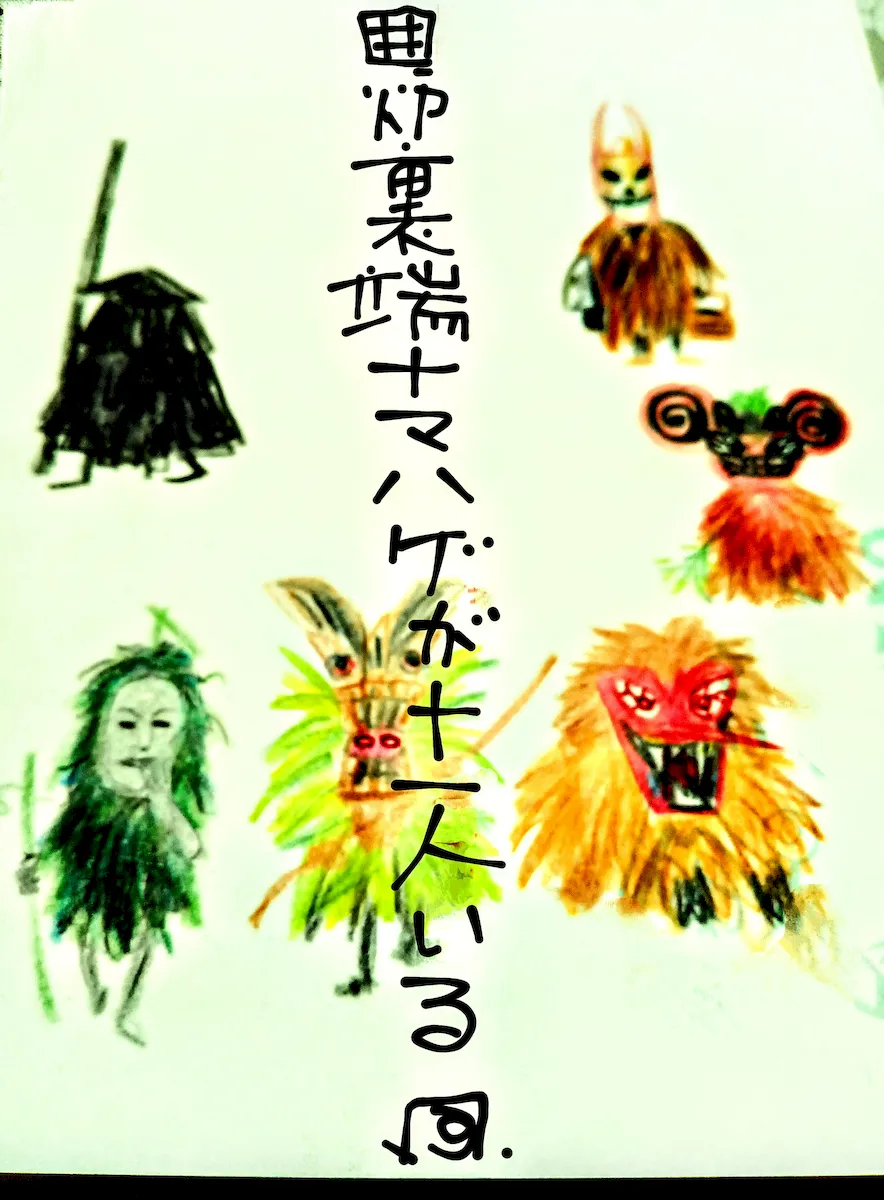 以上が、ユネスコに登録されたものだが、ほかにも、岩手県のホロロンナモミ、福井県のアポッシャ、瀬戸内のコトコト、宮崎県・鹿児島県の弥五郎どん、沖縄県八重山列島のミルク、石垣島・竹富島のアカマタ・クロマタ…等、日本各地に存在する。