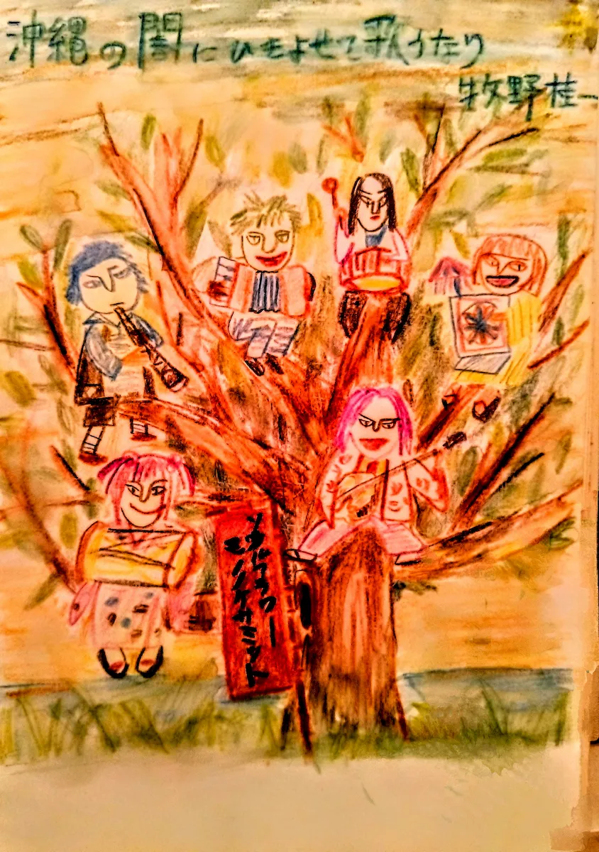 描いたのは、筆者がファンのソウル・フラワー・ユニオン。何度かライヴにも行ったが、彼らの歌には、歌の根源的な「モノノケ」ぽい何かが宿っている気がした。