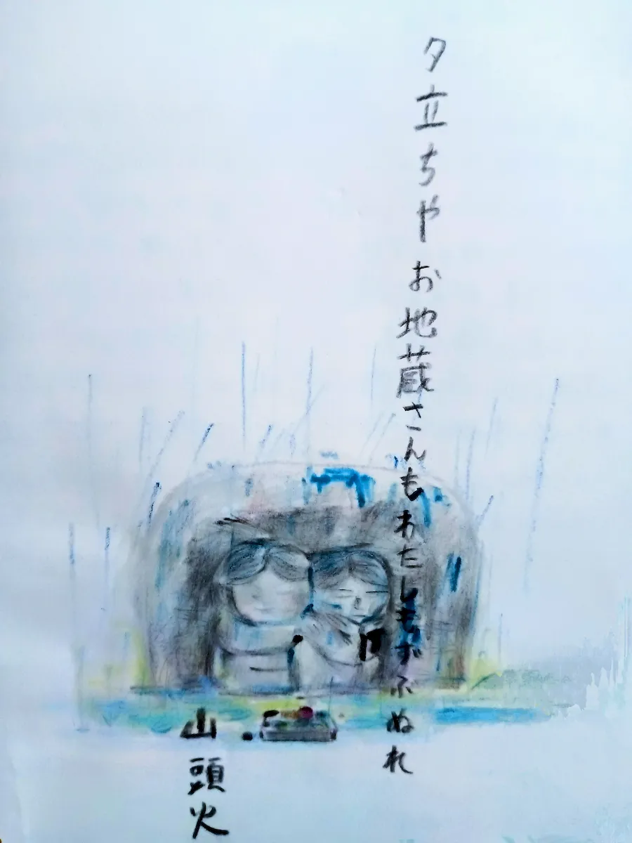 夕立やお地蔵さんもわたしもずぶぬれ山頭火