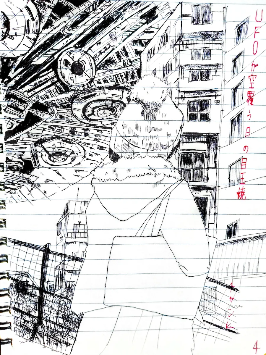 ただ。筆者の中のUFO熱は今だ密かに沸き立っており、描いたのは只今劇場公開中の映画、あさいいにお原作の『デッドデッドデーモンズデデデデストラクション』。そして、中国の小説SF『三体』を読破中。