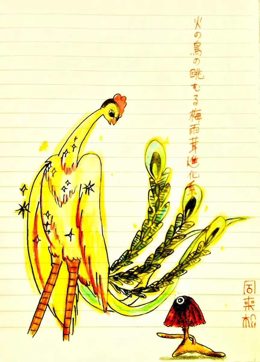 絵に描いたのは、ご存知、手塚治虫の『火の鳥』。ついこの間まで、改修中の道後温泉を覆う幕に描かれていた。今でも、あの大きなマンガ本が家にあるが、最初に見たのは小学校の若い女性の担任に借りてだった。先生にマンガを借りるなんて、なんだか不思議だと思ったのを覚えている…。