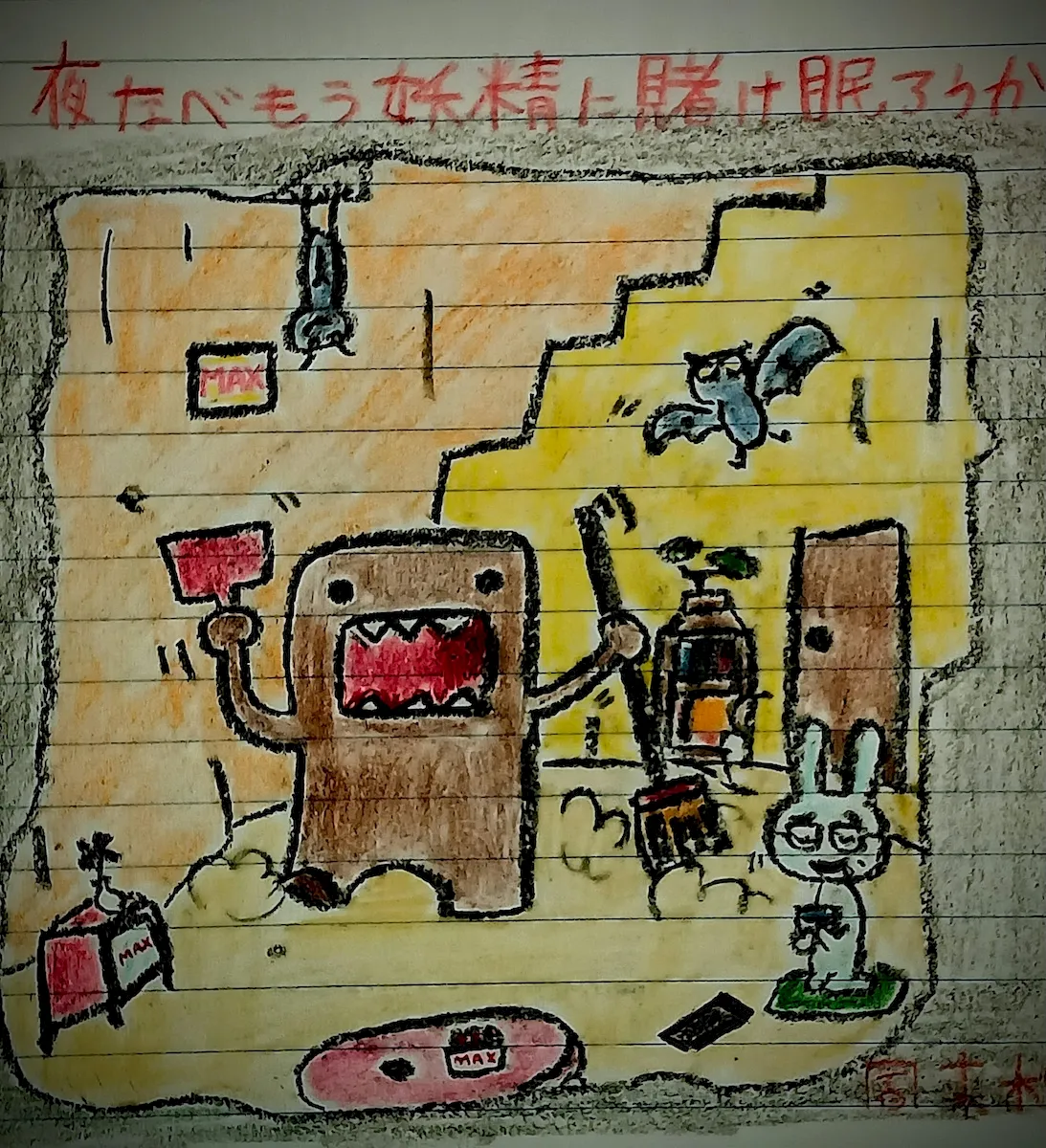 話をブラウニーに戻すと、お菓子のブラウニーの名前も、この妖精からという。また、絵に描いたNHKのキャラクターどーもくんが大好きなレオナルド・ディカプリオは、【どーもくん】の事を勝手にブラウニーと呼んでいる。ただ、どーもくんは、恐竜時代の生き残りなのでお手伝いはしてくれない…多分。