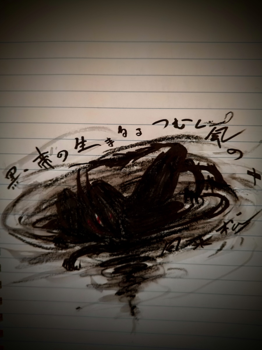 黒帝の生まるるつむじ風の中風来松