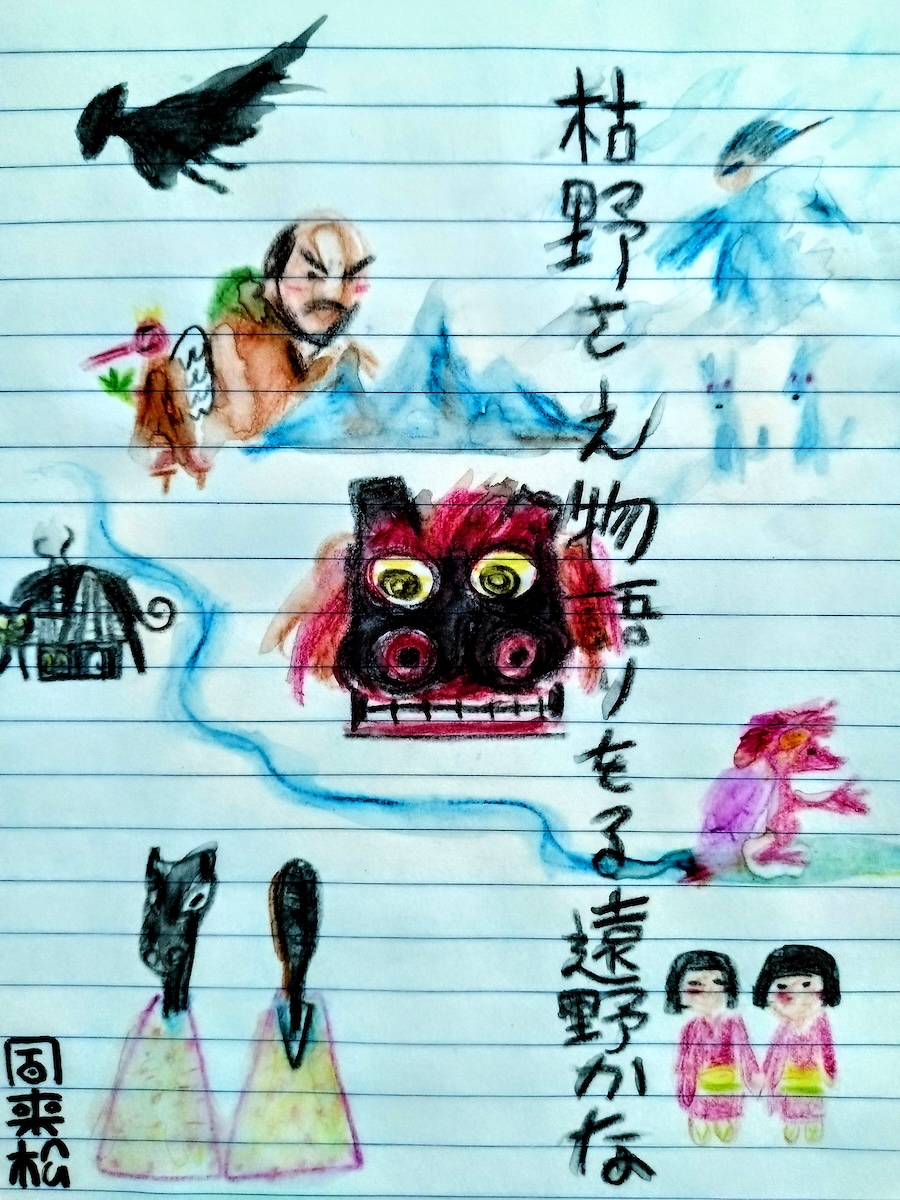 1910年柳田國男が世に出した、岩手県遠野の説話集。土淵村出身の民話蒐集家・佐々木喜善が語った伝承を、筆記・編集した物。119話であったのを、1935年に追加し299話。日本の民俗学の先駆けとも言われる。