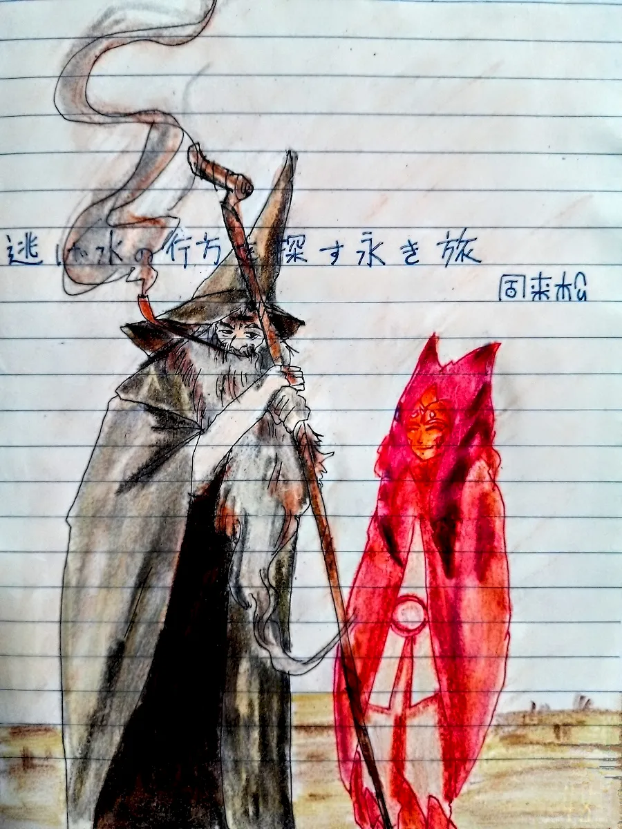 ただ、やはり横綱は『指輪物語』のガンダルフだろう。長い白髪に、とんがり帽子、灰色のローブに、魔法の杖。人間の老人のように見えるが、実は西の果ての神々の国アマンから、サウロンに立ち向かうべく遣わされた5人の賢者イスタリの1人で、マイアなる種族。本名はオローリン。絵に描いたのは、そのガンダルフと、同じく長い探索の旅を続ける『スター・ウォーズ』のアソーカ・タノ。「フォースの共にありますように。」