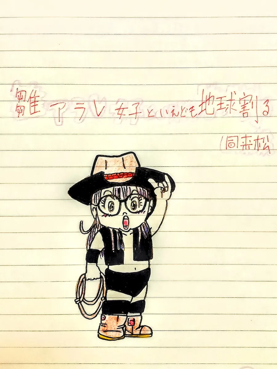 描いたのは、マンガながら、そんな女達の中でもNo.1であろう、アラレちゃんこと則巻アラレ! なんせ地球を割っちゃうからな〜!