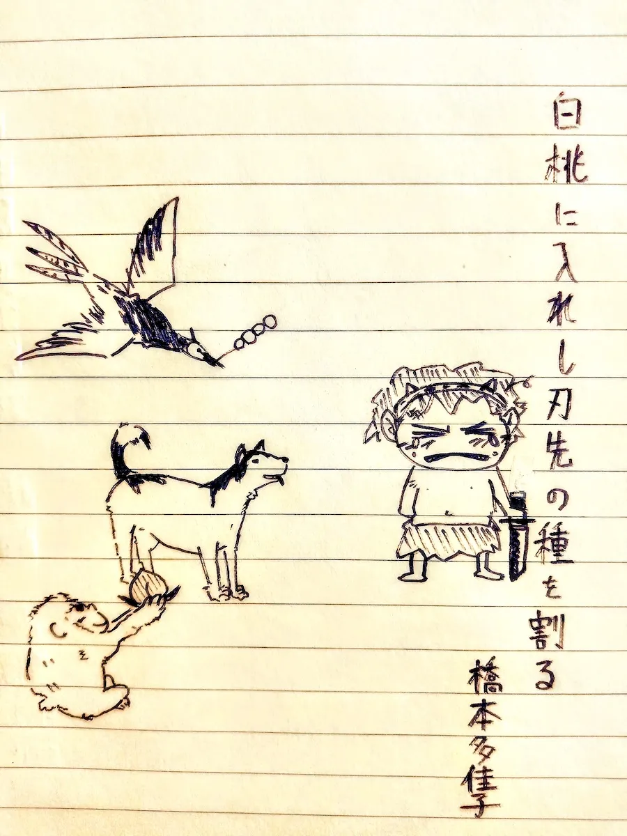 吉備津彦命の家臣には、忠臣・犬飼健命、知将・楽々森彦命、鳥飼に長けた留玉臣命の三人がおり、それぞれ犬・猿・雉のモデルという。