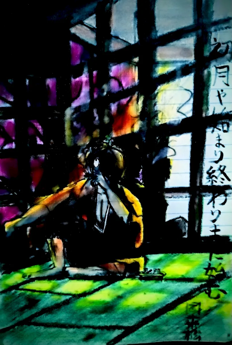 原作では、病のため、ミイラ男のような姿で描かれていたが、2023年の映画『鬼太郎誕生ゲゲゲの謎』では、鬼太郎とよく似た白髪、片目(隠れているだけ)の、イケメン姿で登場。それが描いた絵だ。映画は、横溝正史ワールドを混ぜたような、なかなかアダルティーな内容だったが、悪くはなかった。この作品、水木サンの生誕百周年の一環で作られたのだが、見られたらなんて言っただろうなぁ...。