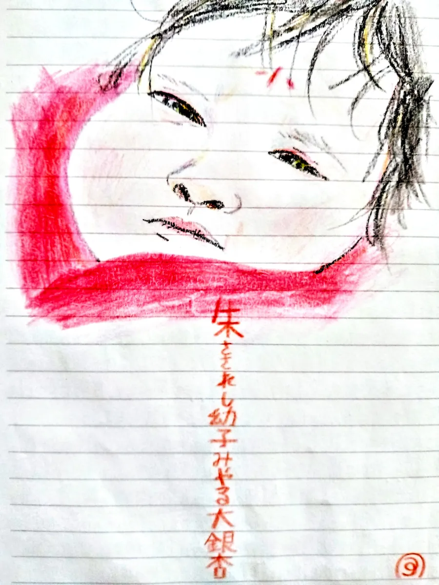 通過儀礼の中にも赤は多い。安産祈願、湯上げの〈赤帯〉に始まり、婚礼の角隠しの〈紅絹〉、還暦祝いの〈赤いちゃんちゃんこ〉...。絵に描いたのも、お宮参りの際赤子の額に朱で文字を書くという風習。