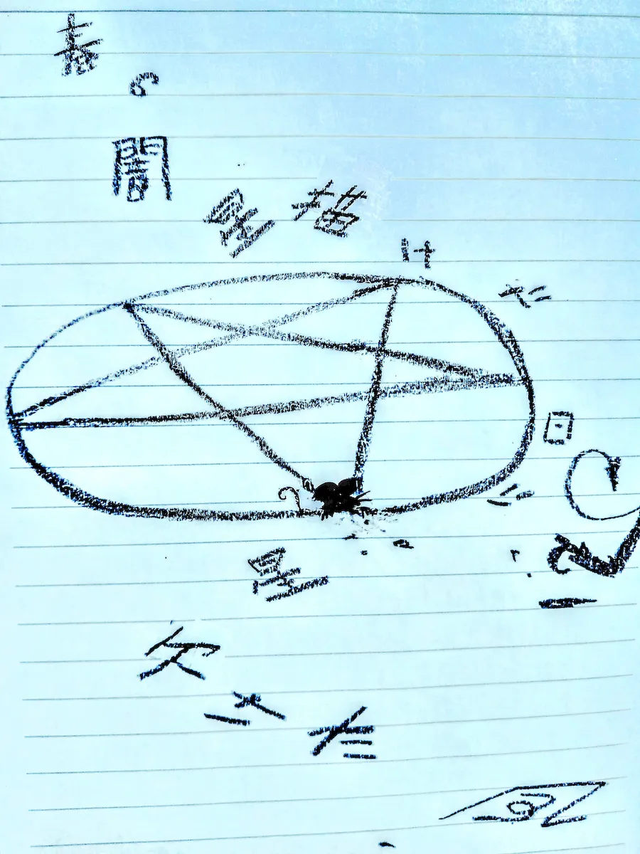 絵に描いたのは、ゲーテの『ファウスト』の一場面。悪魔メフィストフェレスが、部屋の鴨居に描かれた五芒星に閉じ込められた際、ネズミに角を齧らせ脱出!
