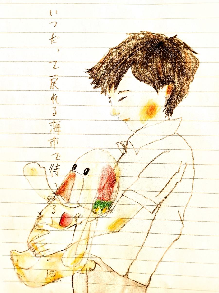 描いたのは、片岡翔の小説『さよならムッシュ』。表紙は松本大洋だ。これは、しゃべるコアラのぬいぐるみ!
