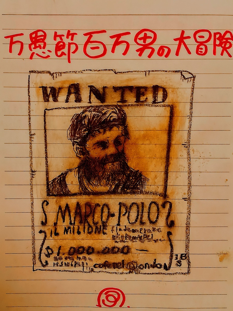 さて、『東方見聞録』が世に出た当初、人々はとんだホラ話だと大笑いしたという。句にも詠んだ「イルミリオーネ=100万男」は、百万長者と、百万の嘘を付くと言う意味で、人々がマルコにつけたあだ名。確かに、マルコが日本に来たという形跡もなければ、元の記録にも、ポーロ達についての記録もない。しかし、『さまよえる湖』のスウェン・ヘディンは、〈シルクロード〉を旅した際、『東方見聞録』の正確さに驚いたというし、マルコの報告を元に、1453年『フラ・マウロの世界地図』が完成した。マルコは中国から陶磁器や、麺(スパゲッティの元になったとも!)、方位磁石も持ち帰っている。そして、これがすぐ後の、〈大航海時代〉の、幕開けに繋がるのだ!