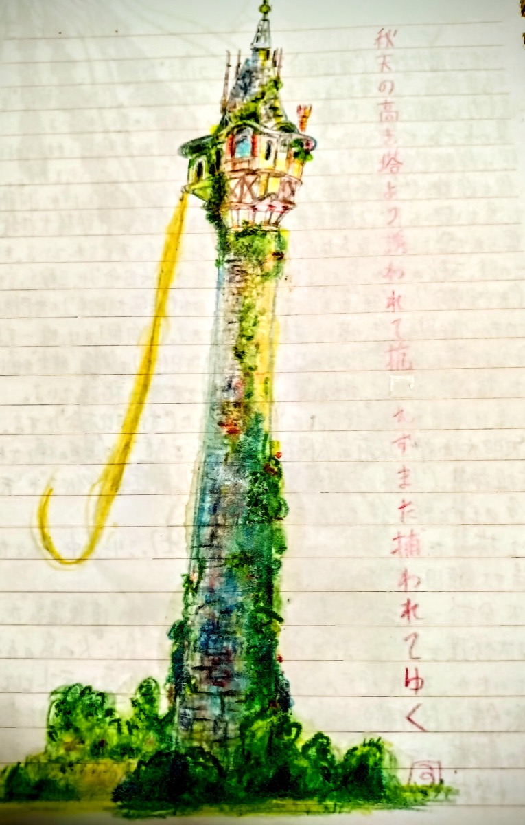 秋天の高き塔より誘われて抗えずまた捕われていく風来松