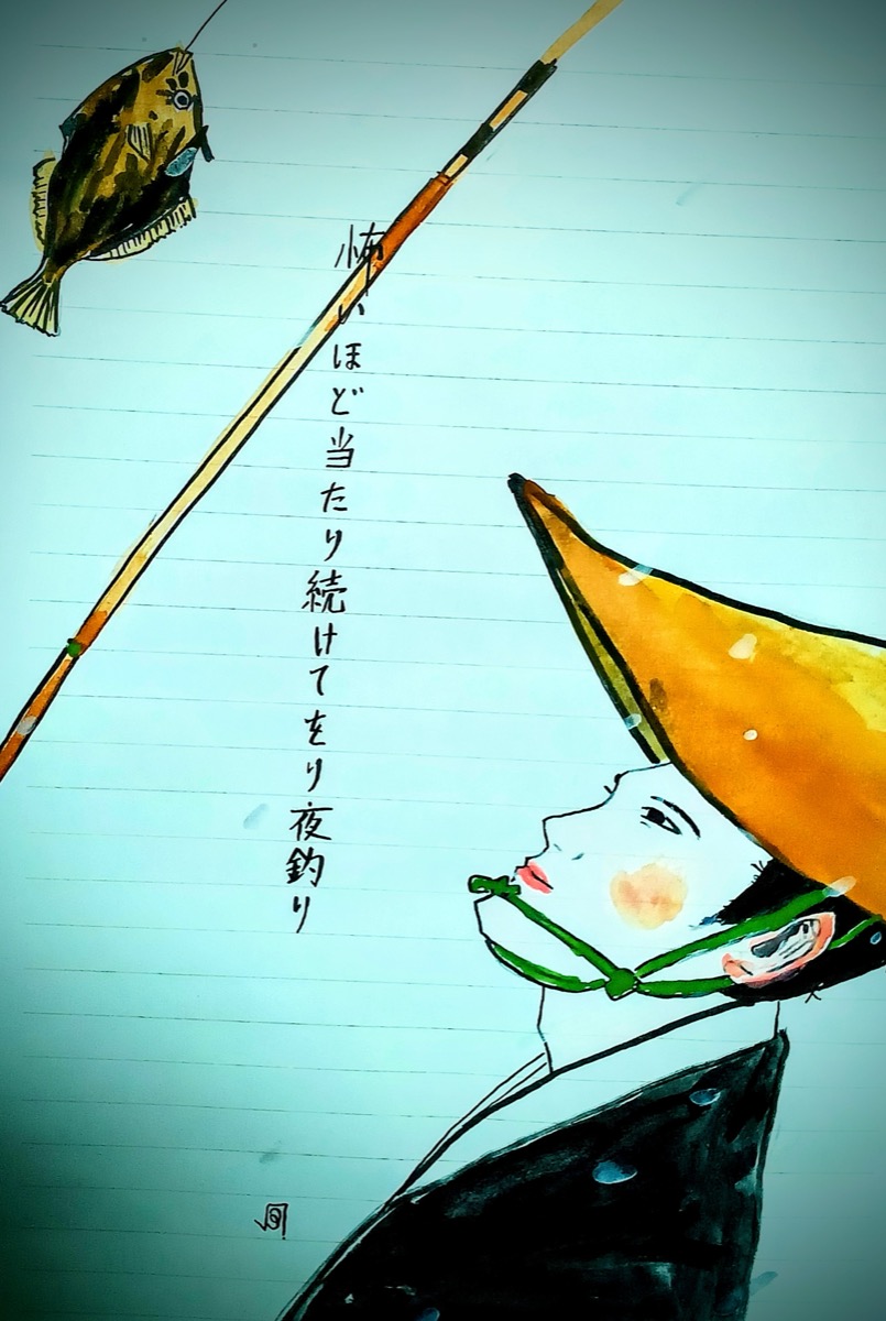 子どもの頃、学校が終わってから、一つ上の従兄に連れられ、ため池に釣りに行っていた。口にはしなかったが、夜の池は不気味だった…。前述の『釣りキチ三平』でも、憑かれたように魚がかかるといったホラーぽい回が時々あったが、句はそんな事も思いだしながら。