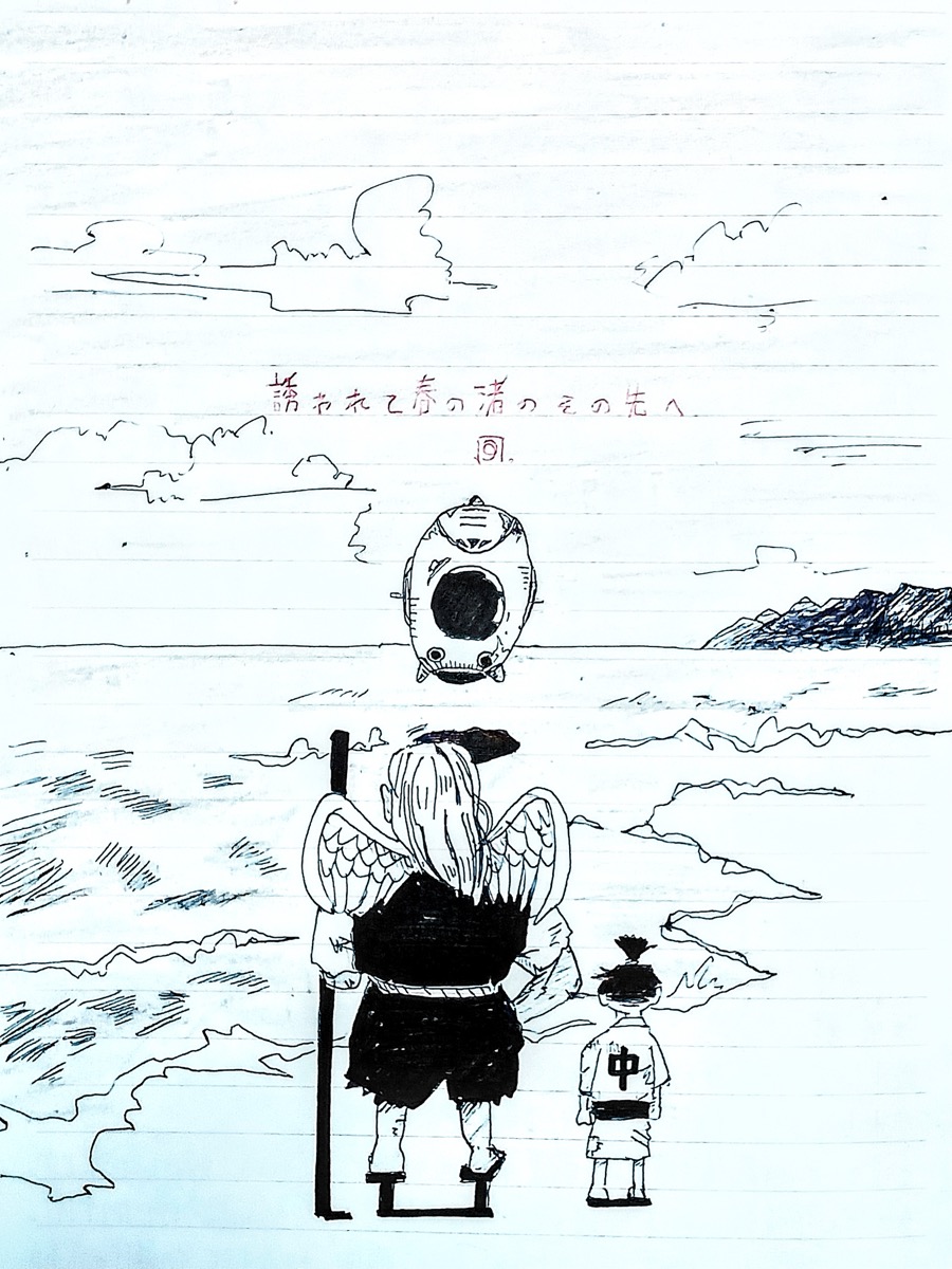 誘われて春の渚のその先へ風来松