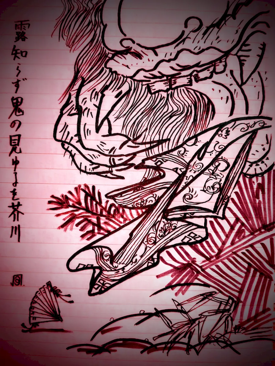 『白玉か何ぞと人の問ひしとき露と答へて消えなましものを』。有名な『伊勢物語・芥川の段』の一場面。ある高貴な女を盗み出した男が、女を蔵の中に隠して一夜を明かしたが、女は鬼に一口で食べられてしまっていた。これを、鳥山石燕は『今昔百鬼拾遺』に『鬼一口』として描き、男は在原業平、女は二条の后・藤原高子と解説を付けている。本当は鬼に食われたのではなく、高子は見つかって連れ戻されたのだと言われるが、俗説にすぎないようだ。『日本霊異記』や『今昔物語集』にも、一夜の契りを結んだ者が鬼に食べられる話が載る。最古の鬼とされる『出雲風土記』の阿用の郷の鬼も、農夫を喰った。