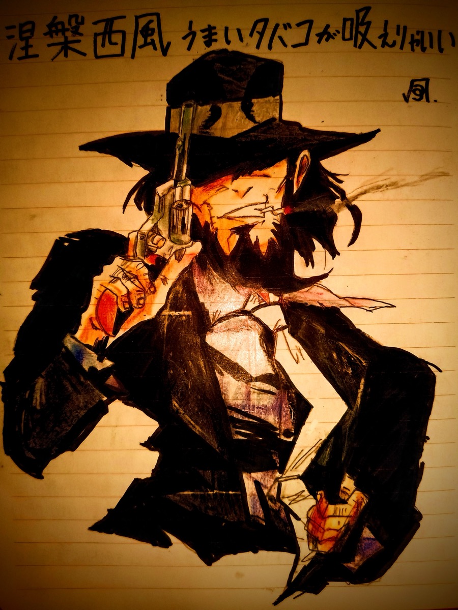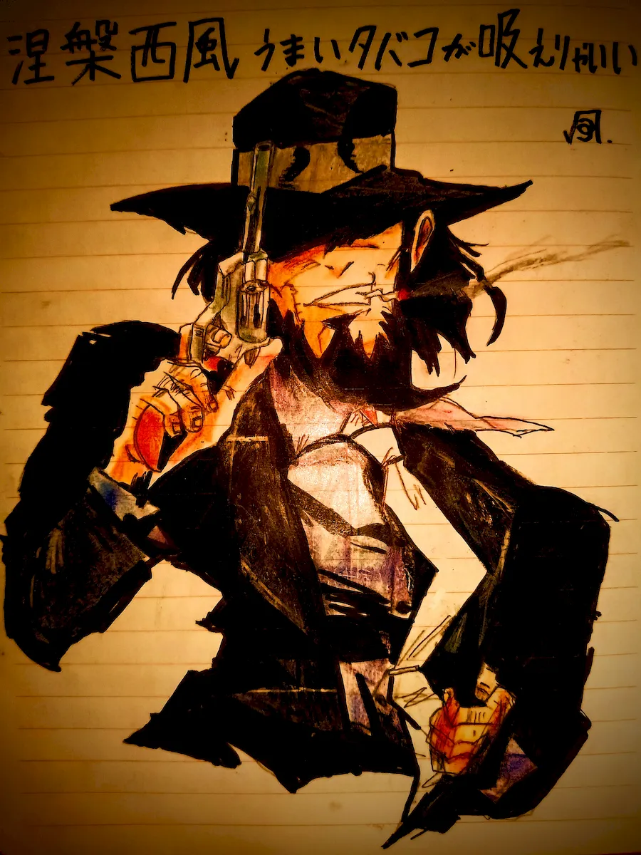 さて、描いたのはタバコといえば…『ルパン三世』の次元大介! 銘柄は、アメリカの〈ポールモール〉。ルパン三世はフランスの〈ジタン〉、峰不二子はアメリカ〈モア〉、銭形は〈しんせい〉。筆者はタバコは吸わないので、良くは分からないが、おそらくもうどれも売っていないのでは? しかし、愛煙家にとっては、つくづく生きづらい世の中になってきたなぁ…。最後に、句にも詠んだが次元から一言。「俺はただ美味いタバコが吸いたいだけだ。」