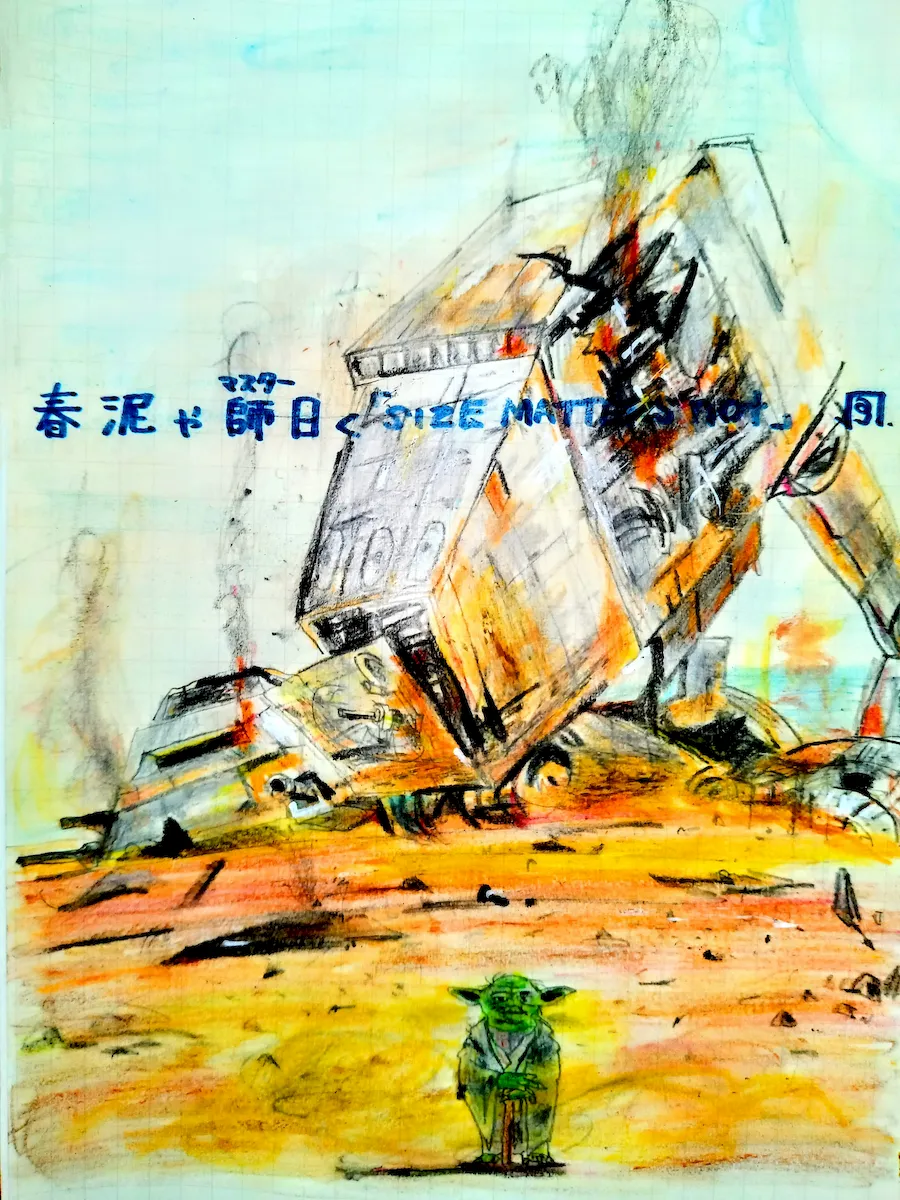 春泥や師曰く「SIZE MATTERS NOT」風来松