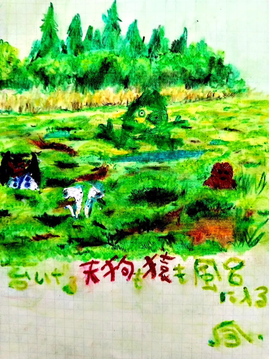 実は、笹倉湿原の歴史は浅い(と言っても人にとってはだが…)。1930年〜40年頃、学術調査隊が発見。暫くは研究者が訪れるだけだったが、1958年『愛媛新聞』に紹介され一般の人々の知れるところとなった。もちろん、林道も通っている場所だけに、それ以前にも杣人たちは認識していた。大正時代に杣の記録した菅藤蔵の記述にも、1933年〈笹倉湿原〉の名が載る。さらに翌年、菅清三郎(親族か?)が、五右衛門風呂の釜を山に運び上げた事も書かれている。筆者も今回、山の中腹にこつ然と現れたその釜を見た。山仕事の汗を流す為に水場近くに据えたが、結局山火事をおそれ使われることはなかったらしい…。