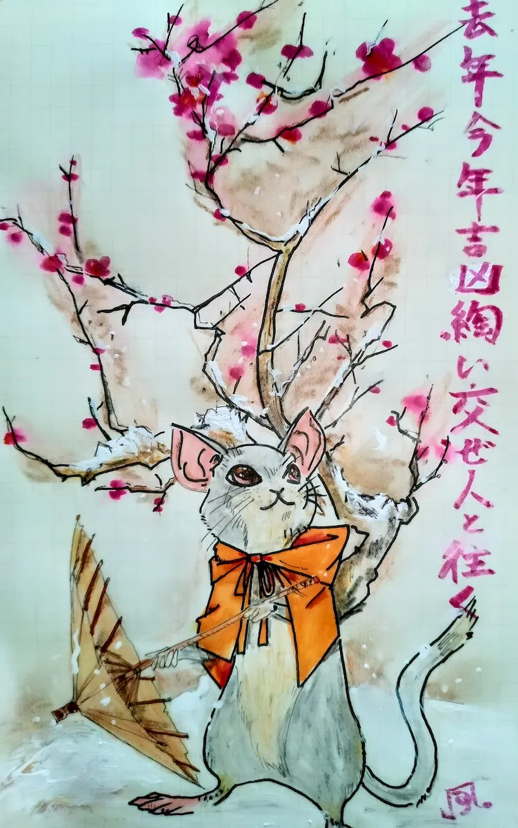 一方で、「ネズミ算」という言葉があるように繁殖力が旺盛な事から、子孫繁栄の象徴ともされ、神聖な動物ともされた。干支でもトップバッターだ。『古事記』では大国主命が素戔嗚命から野に放った鏑矢を取ってくるように言われるシーンで、鼠に助けられる。大国主命と習合した大黒天も鼠を神使とし、中国西域でも毘沙門天の眷属とされる。そんなところから、昔話の『おむすびころりん』の元となった、御伽噺『ねずみ浄土』も生まれたのだろう。「ねずみ」の語源も、「根の国に棲む」から来ているという説がある。柳田國男の『海上の道』には、沖縄では鼠は【ニライカナイ】から来た【神使】とされ、害獣として捕らえた時も海に流して送り返した…とある。